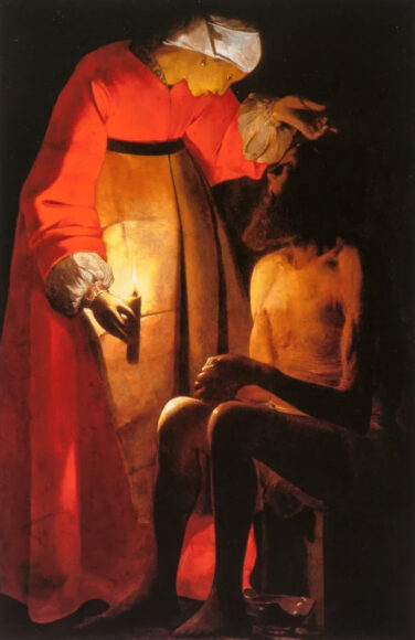 Looking at his art today — the irresistible night pictures, the flickering candles, the haunting moods — it’s difficult to imagine him ever being overlooked. But the gods of art love a circuitous route and arranged for his life and career to be filled with unusual amounts of mystery. Born in 1593 in an obscure corner of Lorraine in France, he led an obscure life, painted a lot of obscure pictures, most of which have obscurely disappeared, and died obscurely in 1652. That’s pretty much all we know about de la Tour.