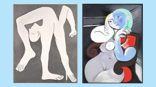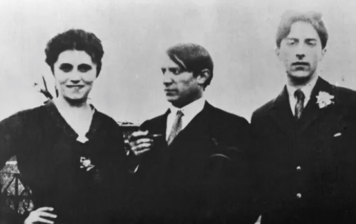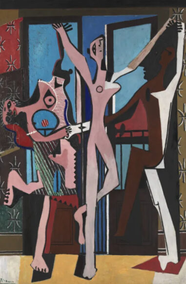 The man is clearly Picasso, reduced, typically, to a silhouette. The screaming woman on the left is, surely, his Russian wife Olga, whom he had begun to caricature nastily in his art. The dancing nude is a lover who has come between them.