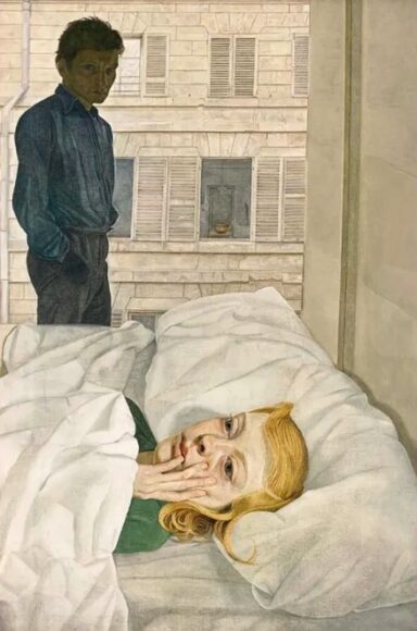 The key painting of Blackwood shows her fretting in bed in a Paris hotel while a shadowy and creepy Freud looks on. As a couple they could hardly be more separated. Reality is being jigsawed.